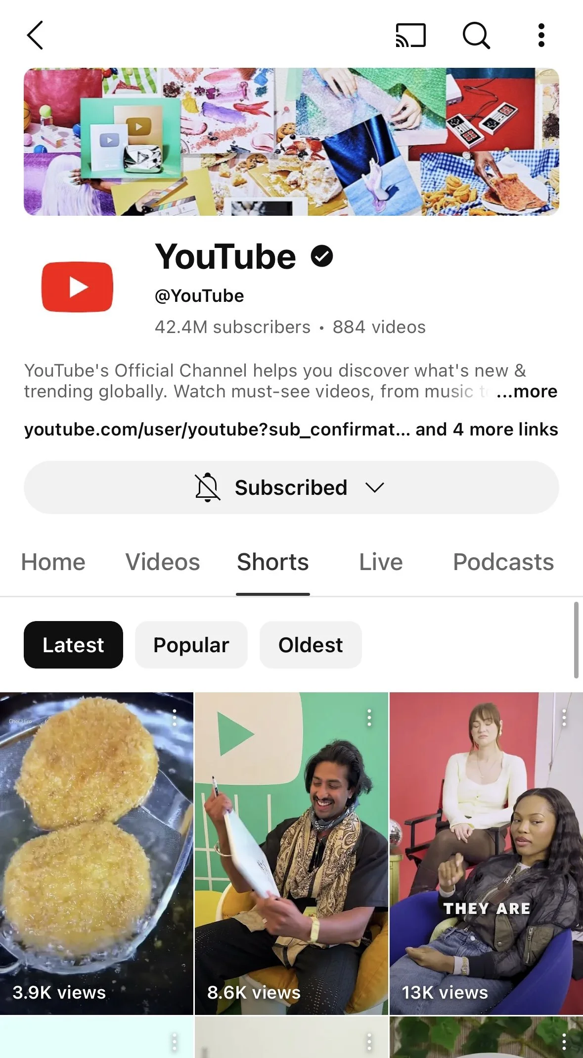 I am the creative director across YouTube’s content for the following handles (everything posted from July 2023 - present)
