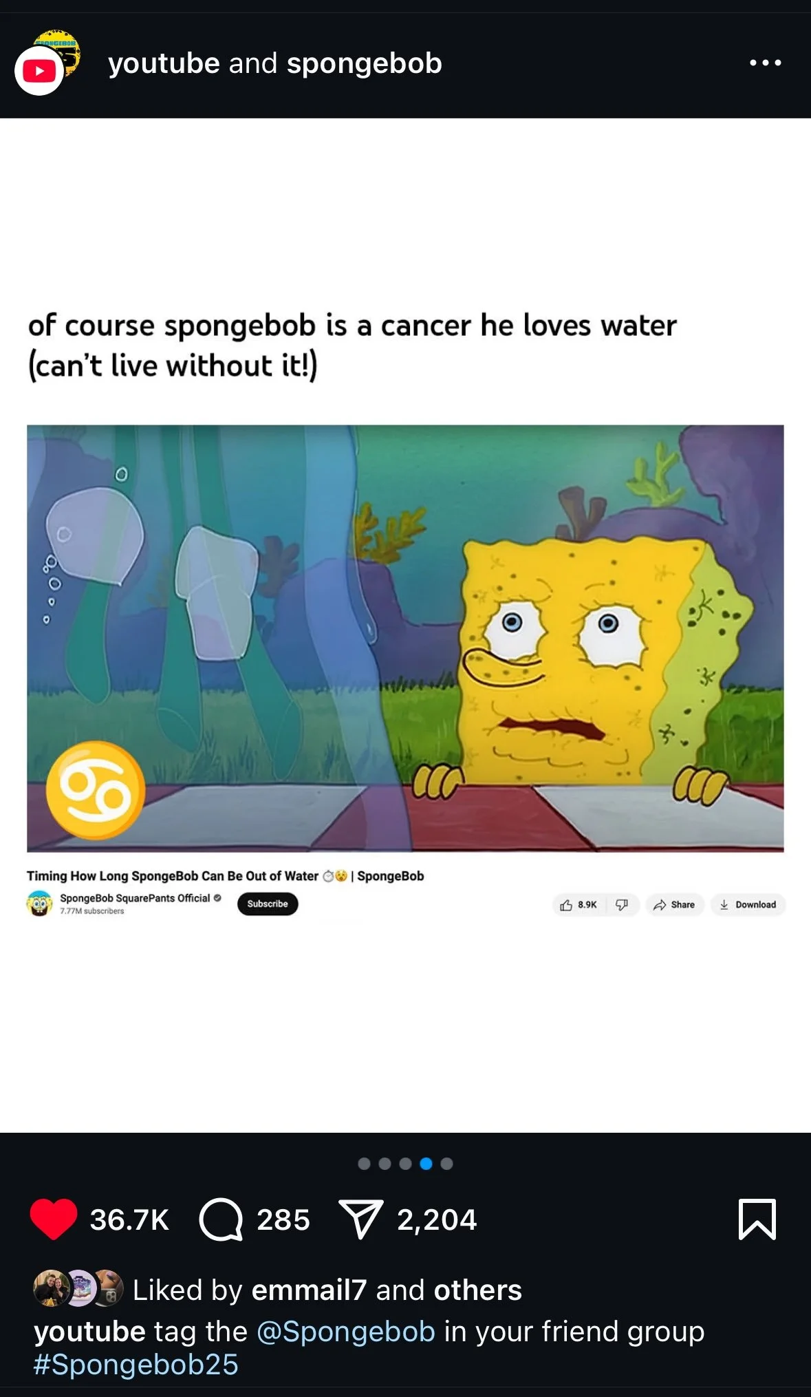 The Spongebob fandom is strong within our audience, knowing this we partnered with Spongebob to do a post for his birthday. We intersected astrology insights with the fandom making it sharable among others celebrating cancer season. The post was not only successful for us but also one of the Spongebob account’s most successful posts to date.