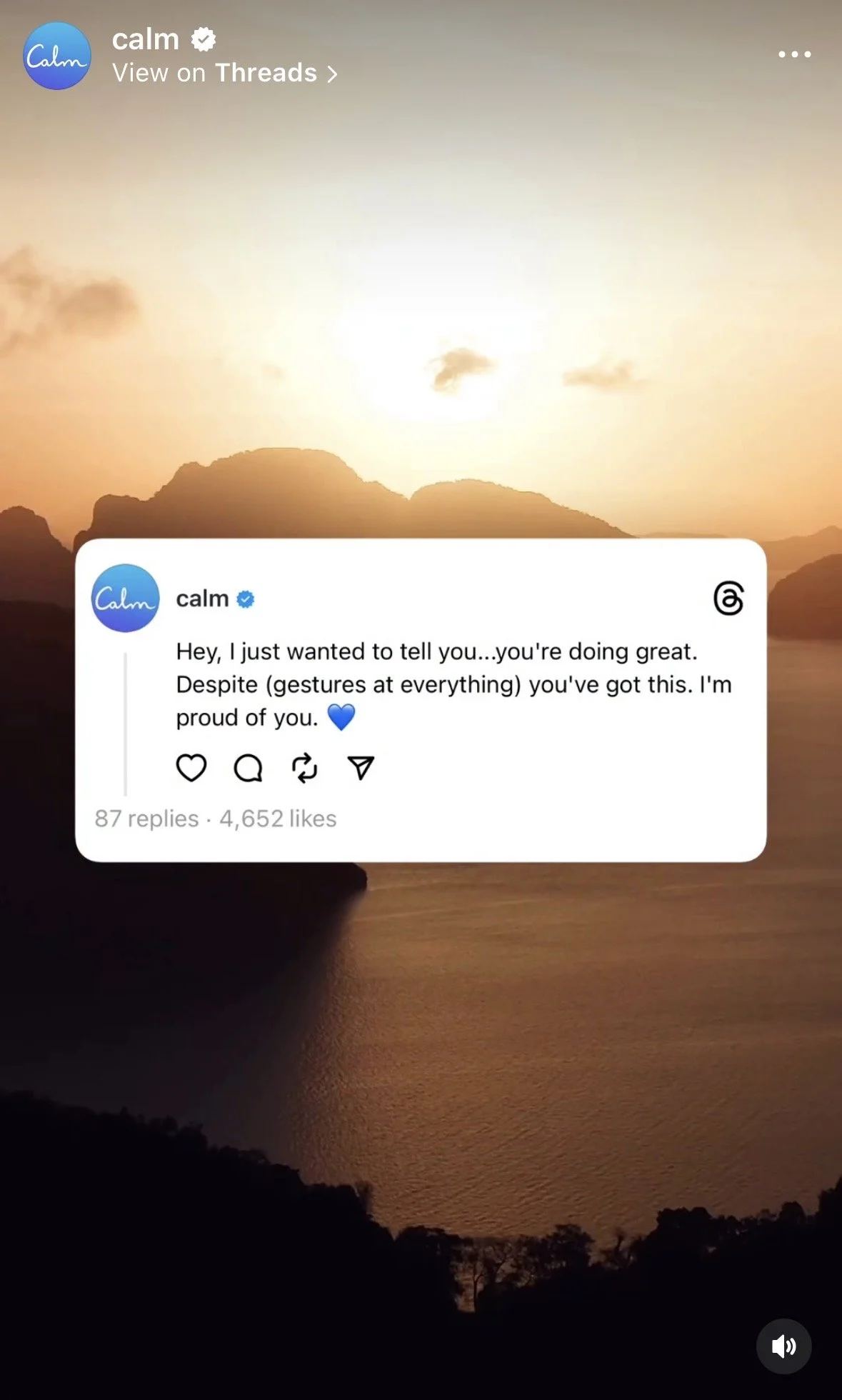 As the Brand Marketing Lead for Calm I lead both creative and strategy across all socials. We have developed the tone of voice, creative direction etc. for TikTok, Facebook, Instagram, YouTube Shorts, Youtube and Threads. I also lead marketing for larger brand campaigns, licensing & partnership marketing, creator & community initiatives, internal campaign launches (ie. Celebrity Sleep Stories) and new product launches (ie.Calm Sleep).